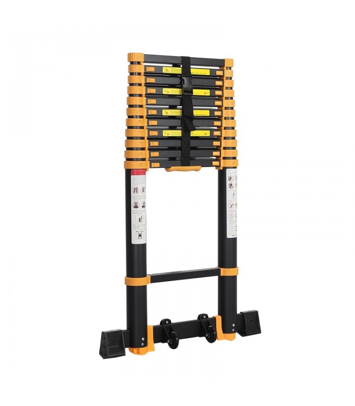 Τηλεσκοπική σκάλα αλουμινίου ηλεκτροστατικής βαφής χρώματος μαύρου.