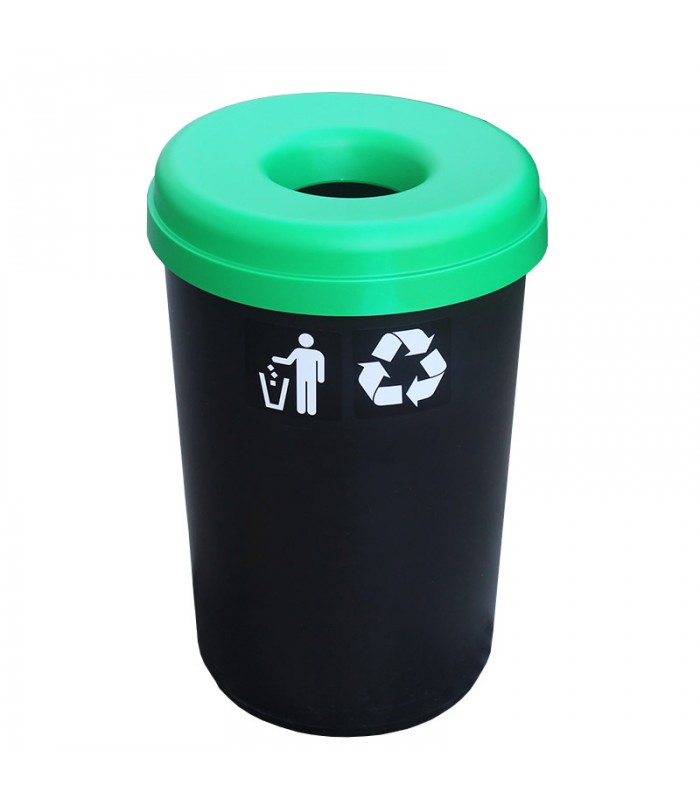 316-0236 ΚΑΔΟΣ ΠΛΑΣΤΙΚΟΣ BASIC OPEN TOP FULL COLOR ΜΑΥΡΟΣ ΜΕ ΠΡΑΣΙΝΟ ΚΑΠΑΚΙ Ø42xh62,5cm 60LT ΒΙΟΜΕΣ
